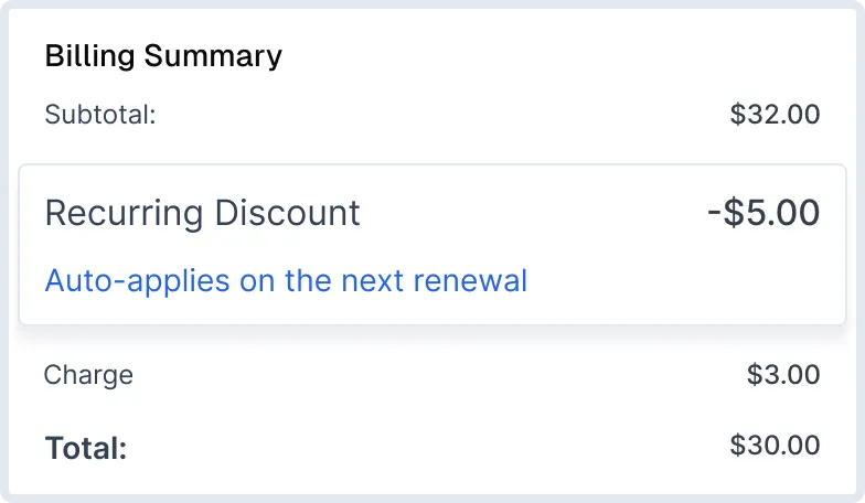 Boost customer retention by offering recurring discounts on your Programs, Class Packs, and Memberships.