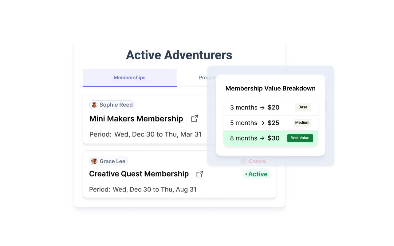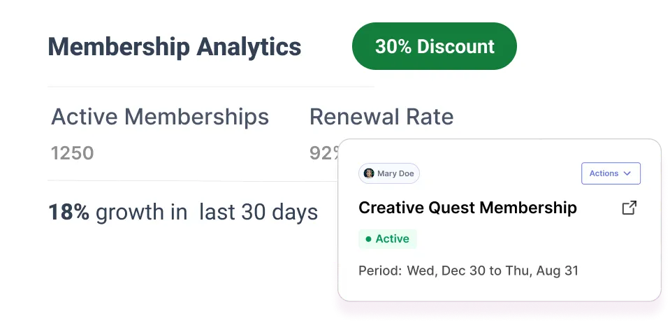 Make memberships feel valuable from day one with exclusive access, member-only pricing, and tiered perks—while automation reduces admin so your team can focus on members.