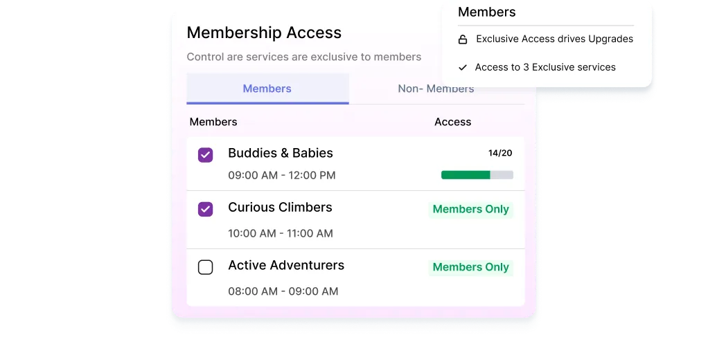 Give members access to services non-members can’t use to create a clear reason to upgrade. Use that exclusivity to boost perceived value, keep members longer, and turn casual visitors into committed members.